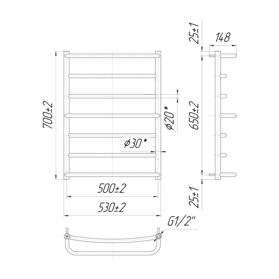 Рушникосушарка Mario Люкс 700x530/500 1.1.0303.01.P